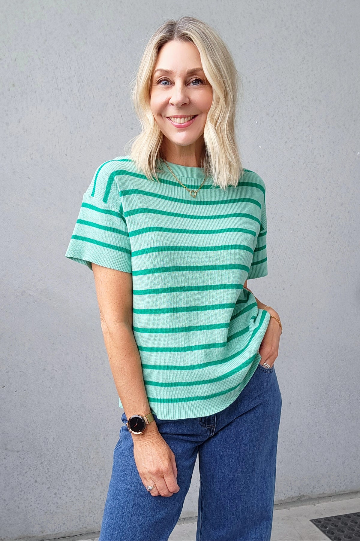 A relaxed knit top that pairs back easily with jeans or work pants.
