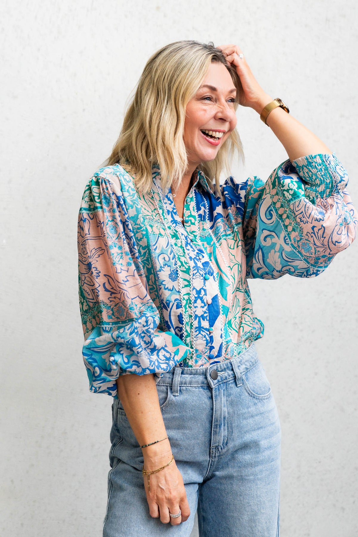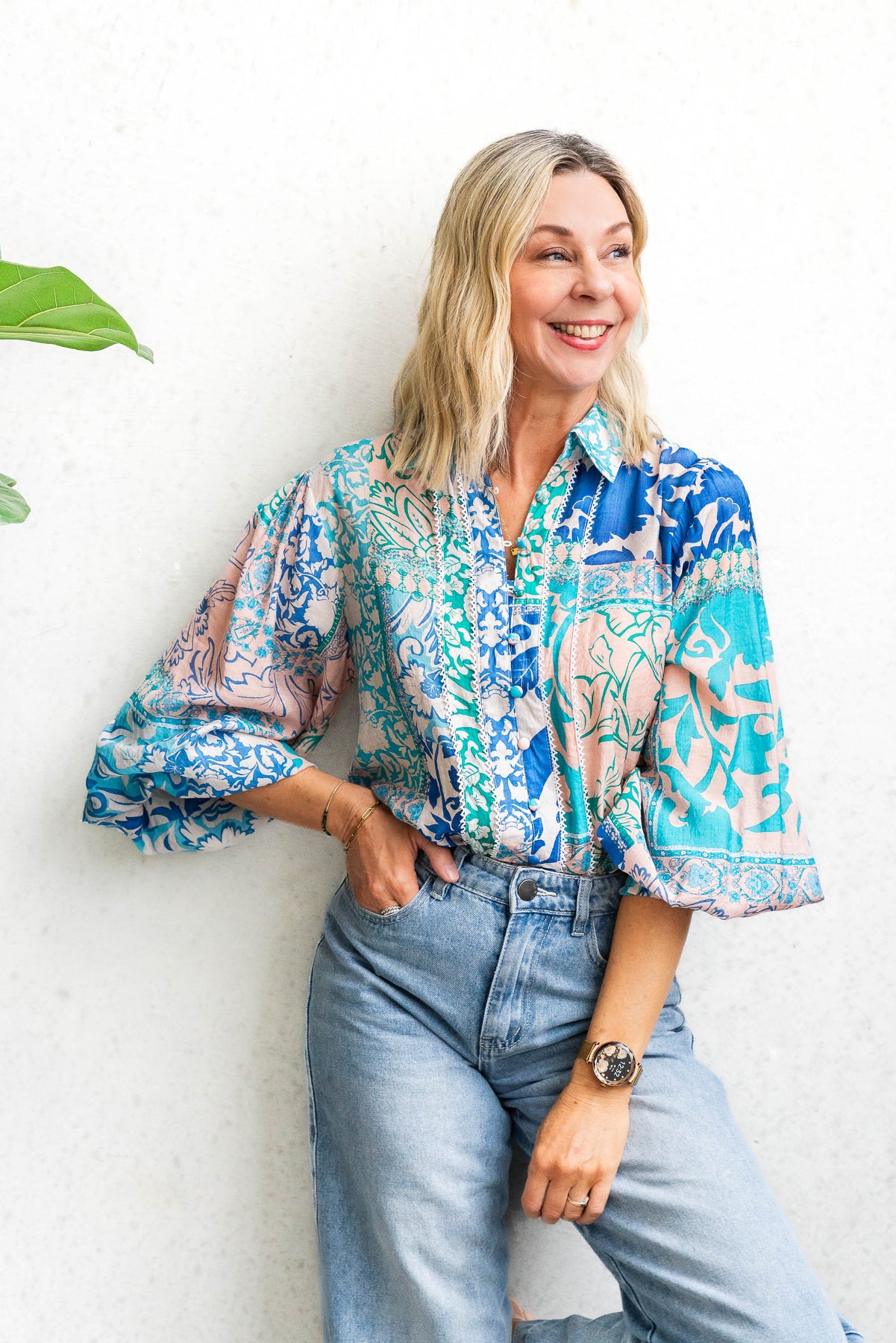 She is a statement, she is devine, she is the moment.  This sheer feel shirt is the ultimate desk to dinner style.