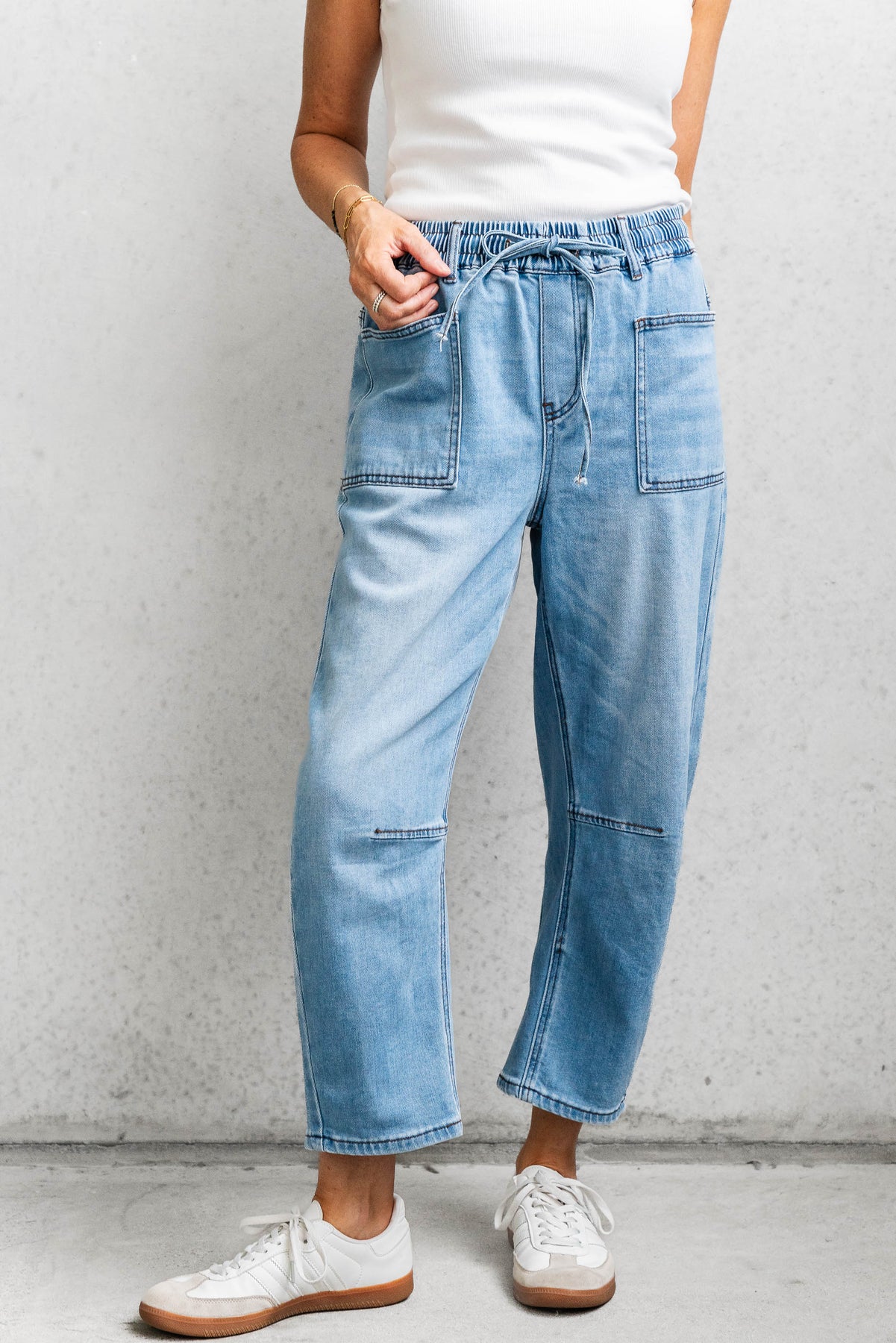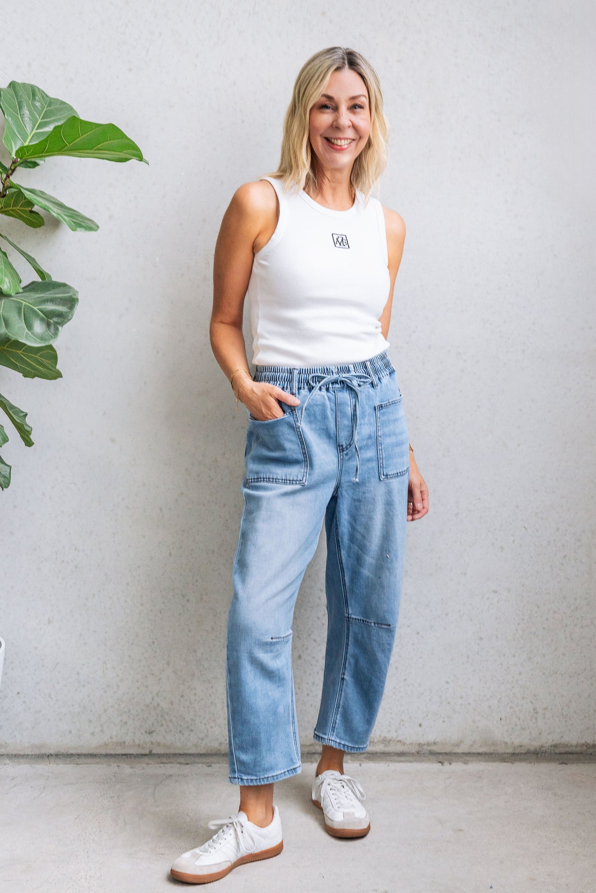 The softest stretch denim in one of the most wearable casual styles there is! The elasticated waistband sits at a mid to high rise and the relaxed leg shape offers a true barrel style with a perfect cropped ankle finish. Pairs easily with slides, sneakers or a dressier flat.