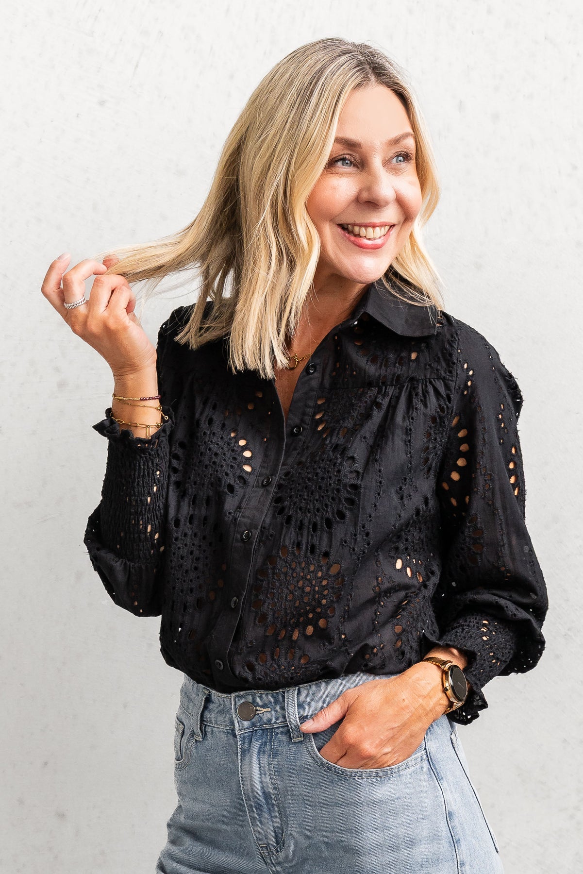 Our favourite kind of shirt; comfy, breathable and can be worn from desk to dinner. Just swap the cami for a bra only look.