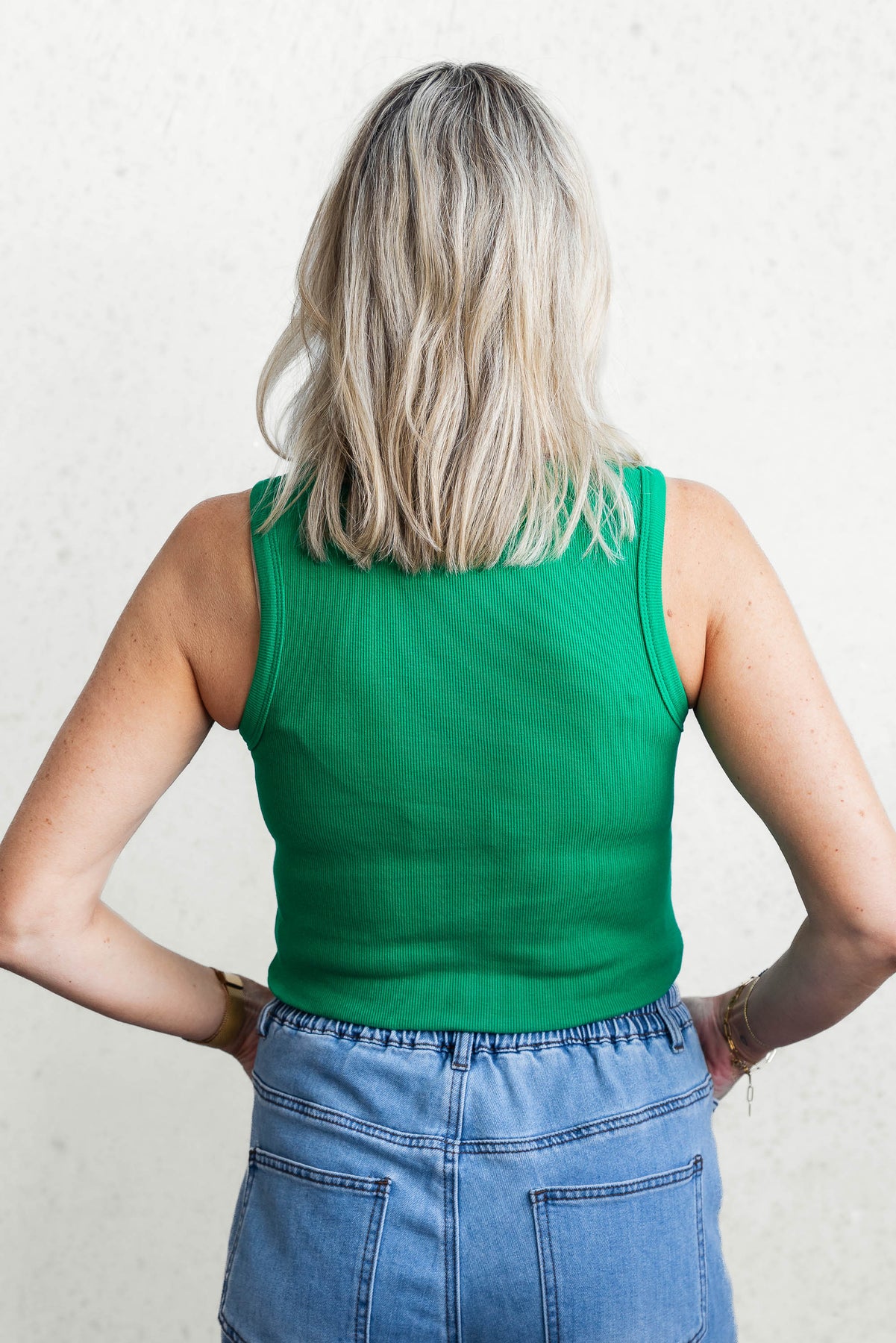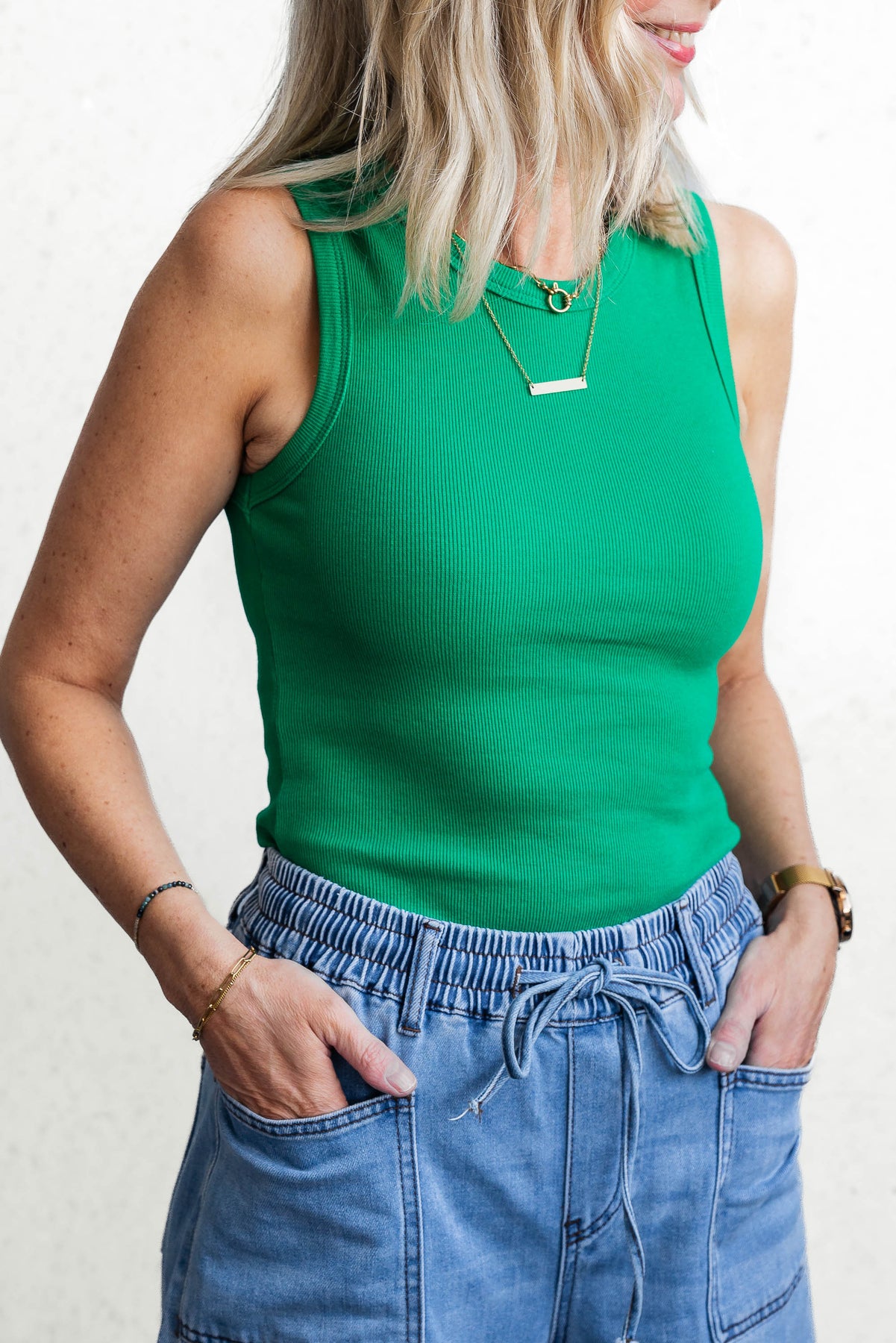 This thicker, luxe feel, cotton rib is a dream on the body. Offering structure where you need it but still being stretchy and comfortable too. The longer length is perfect for those days when you just don't feel like tucking.