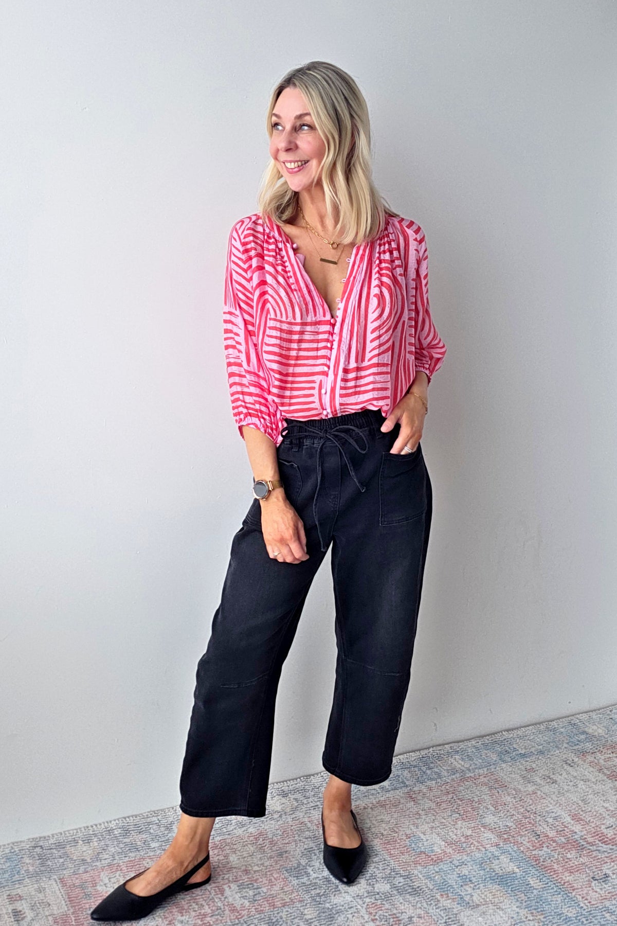 Malta Button Top - Pink/Red