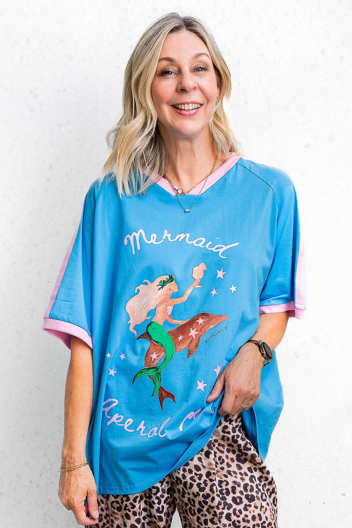 Viva la Mermaid! The short V-neckline adds a great point of difference and comfort at the neckline. A true oversized style; this is designed to be worn long and loose!
