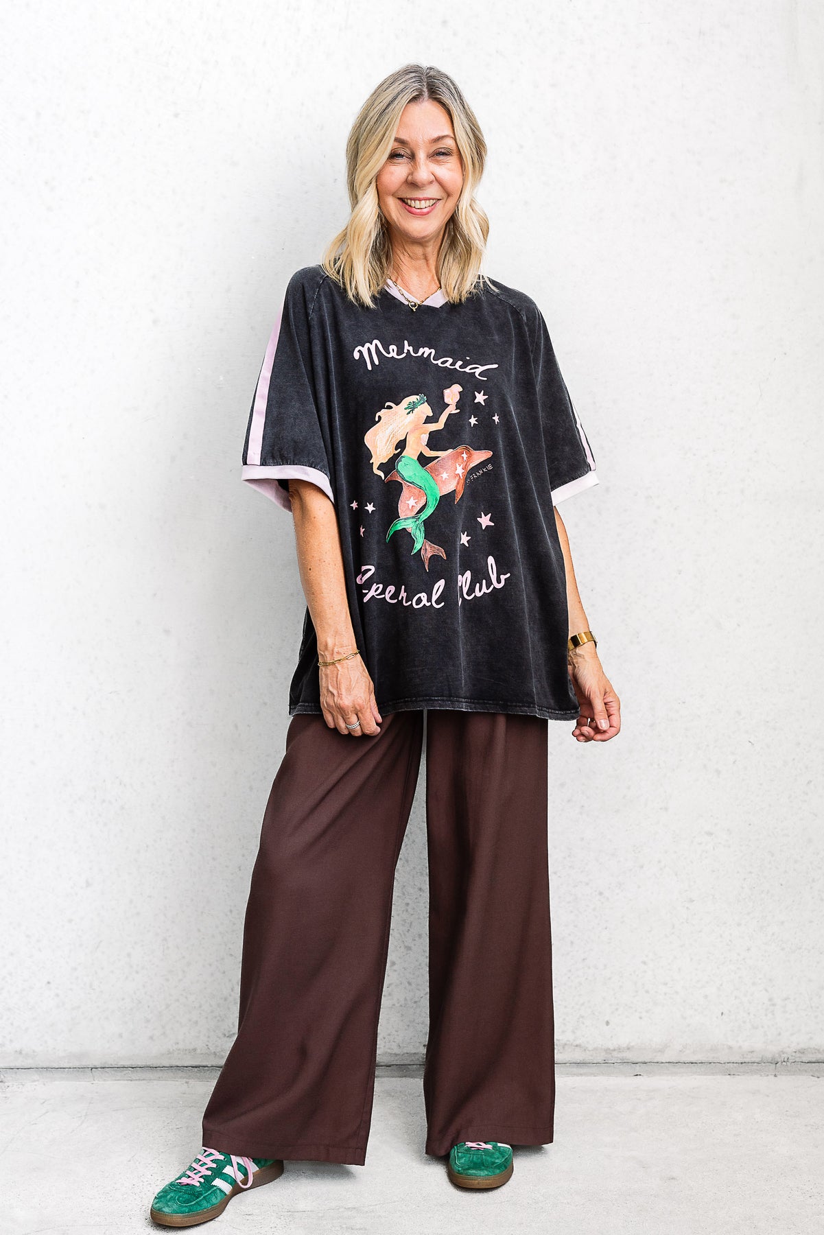 Viva la Mermaid! The short V-neckline adds a great point of difference and comfort at the neckline. A true oversized style; this is designed to be worn long and loose!