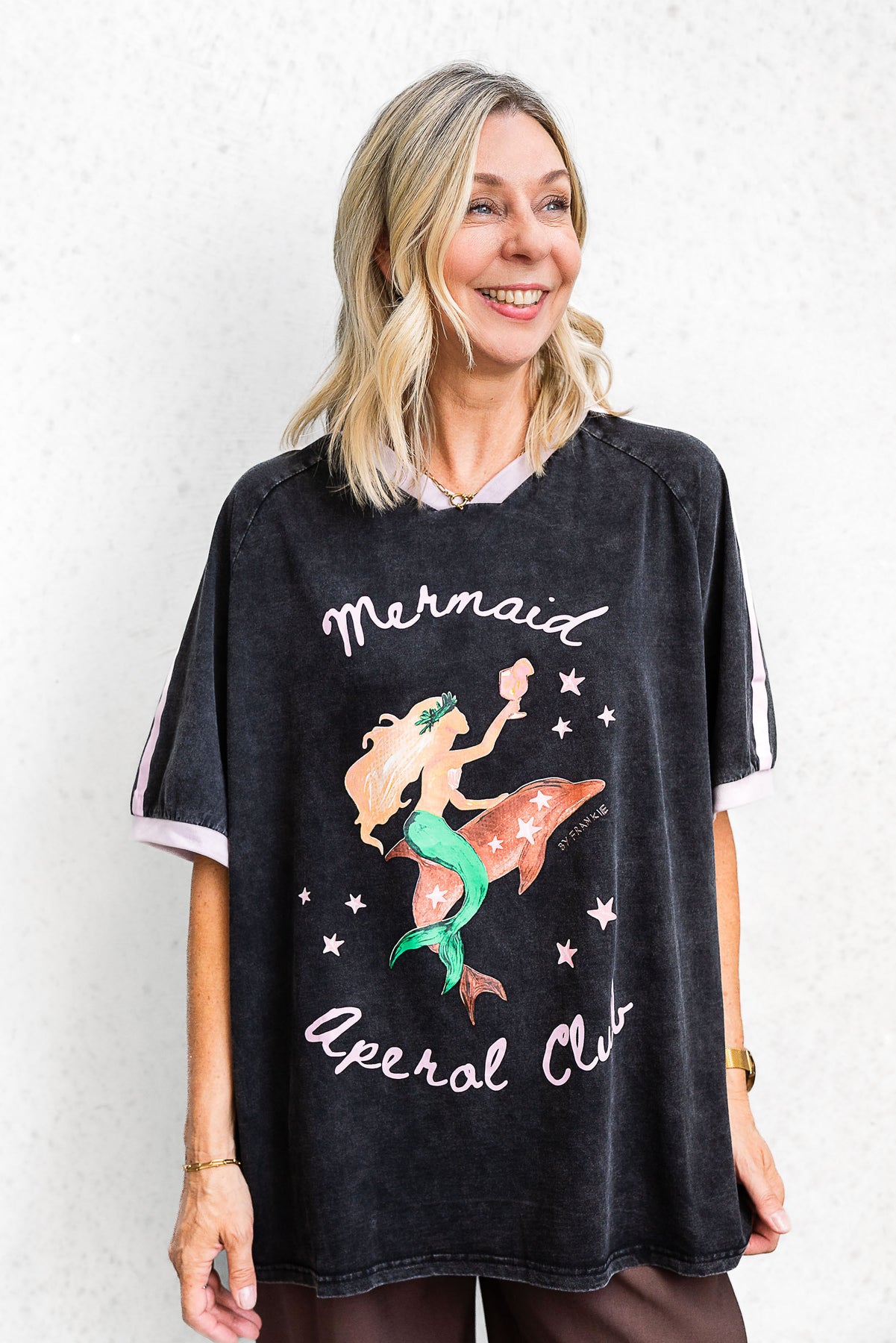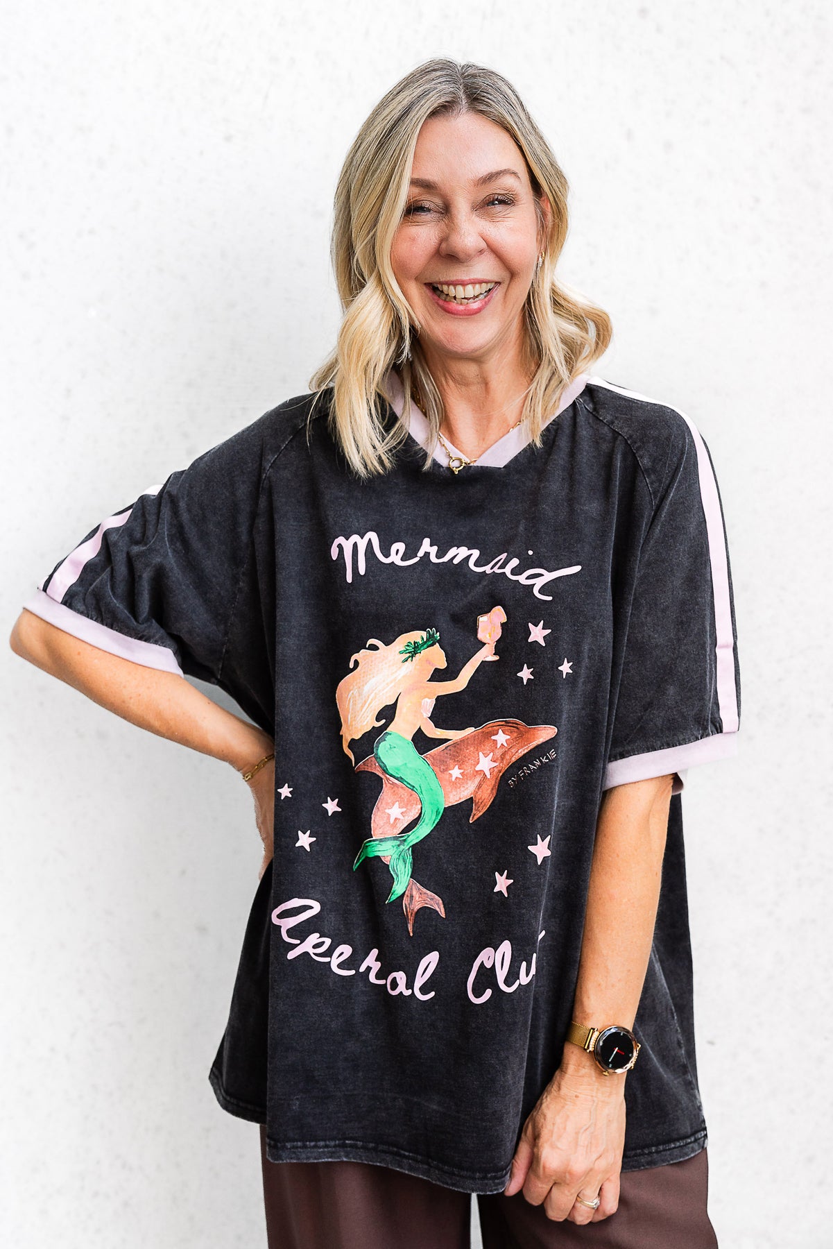 Mermaid Aperol Club Tee - Washed Black - Mabel and Woods