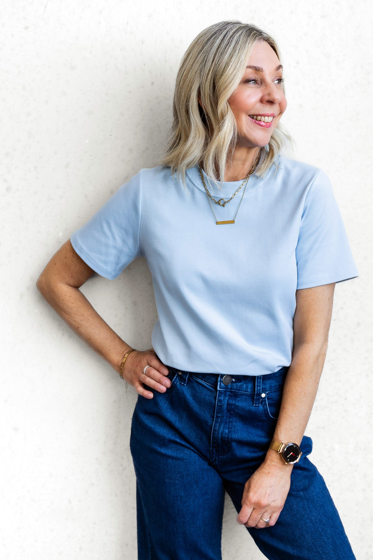 A slimmer fit style, in a premium combed cotton; this shape is great for tucking in, making it an elevated option for work or the weekend.