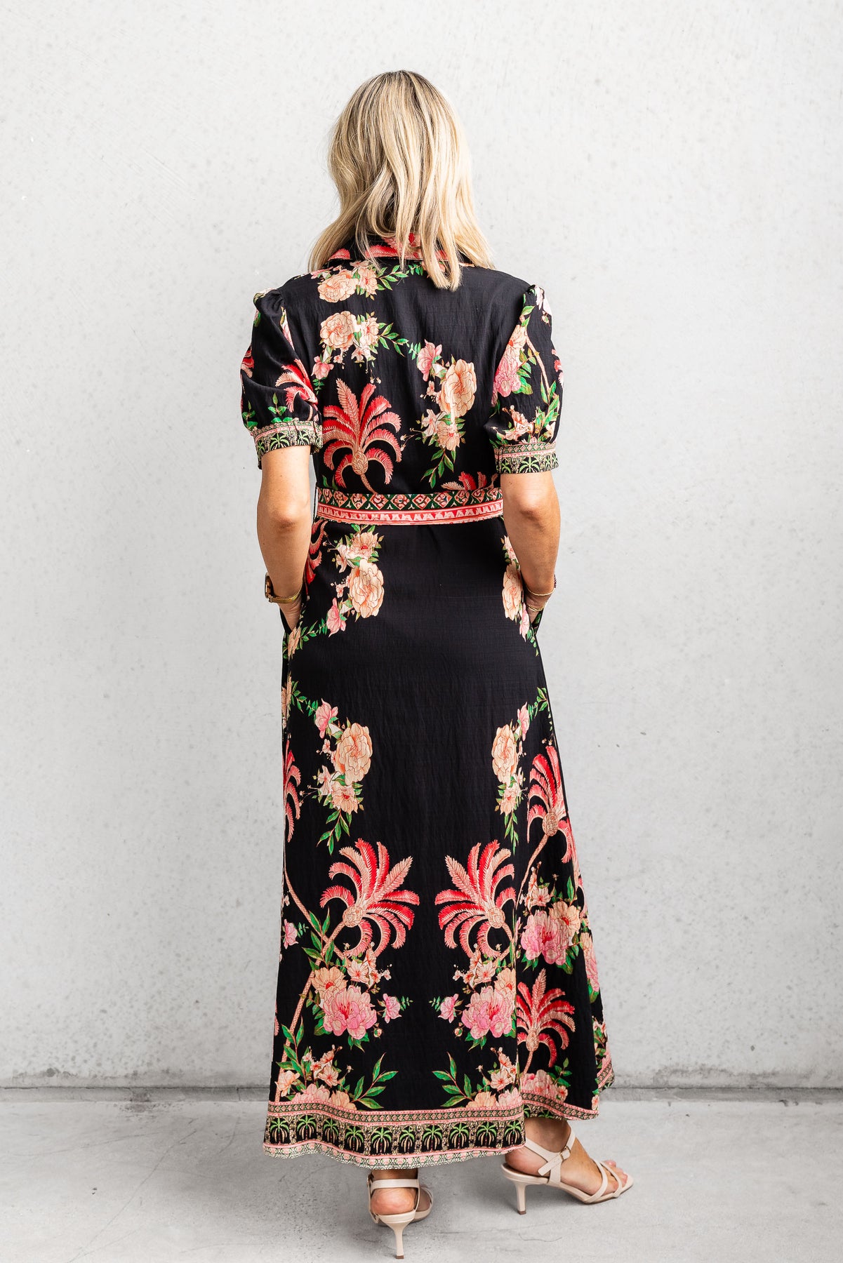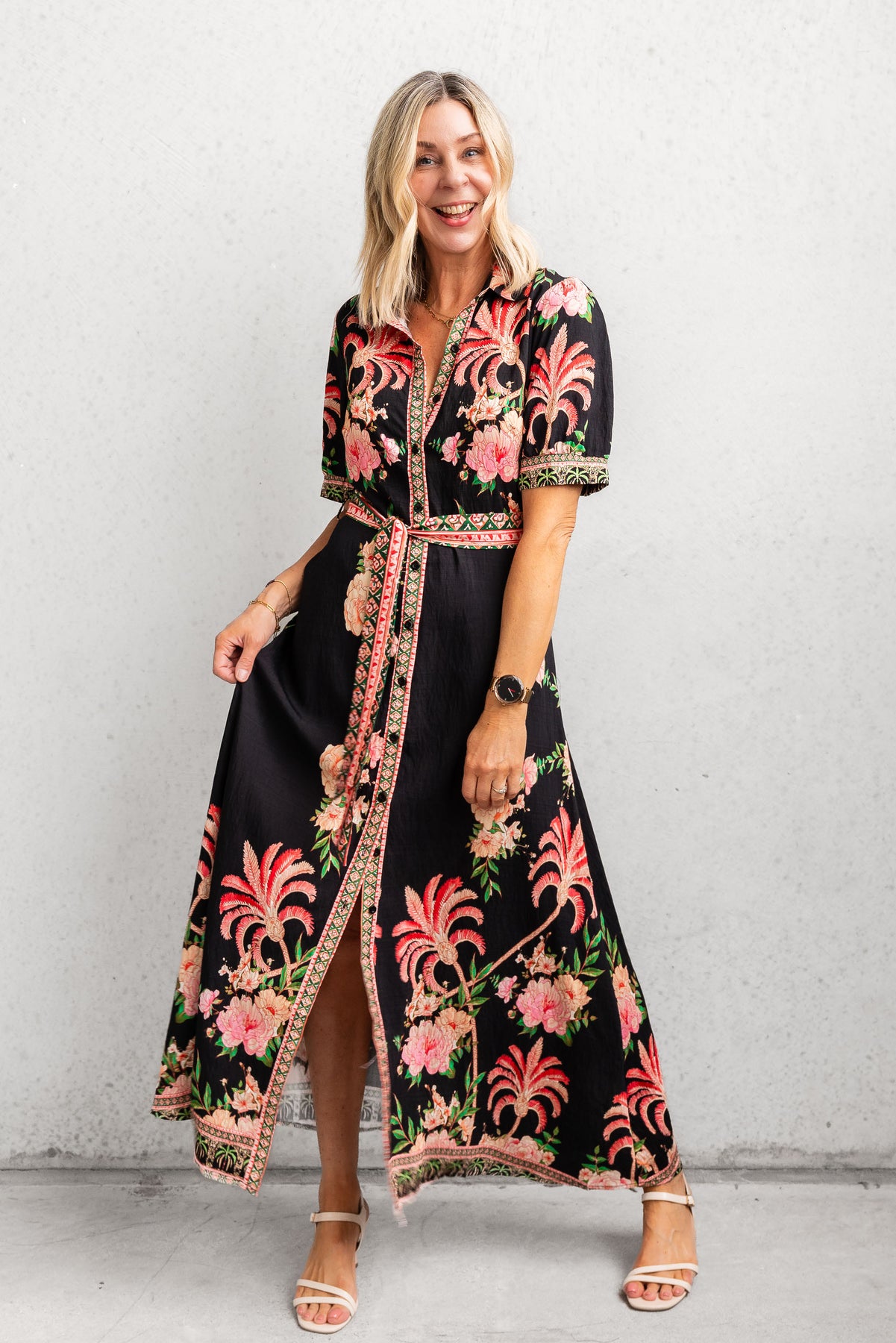 A bold and stunning colour combo, in a simple and flattering shape. The shirt dress style with waist seam creates a structured feel; perfect to take you from desk to dinner to event.