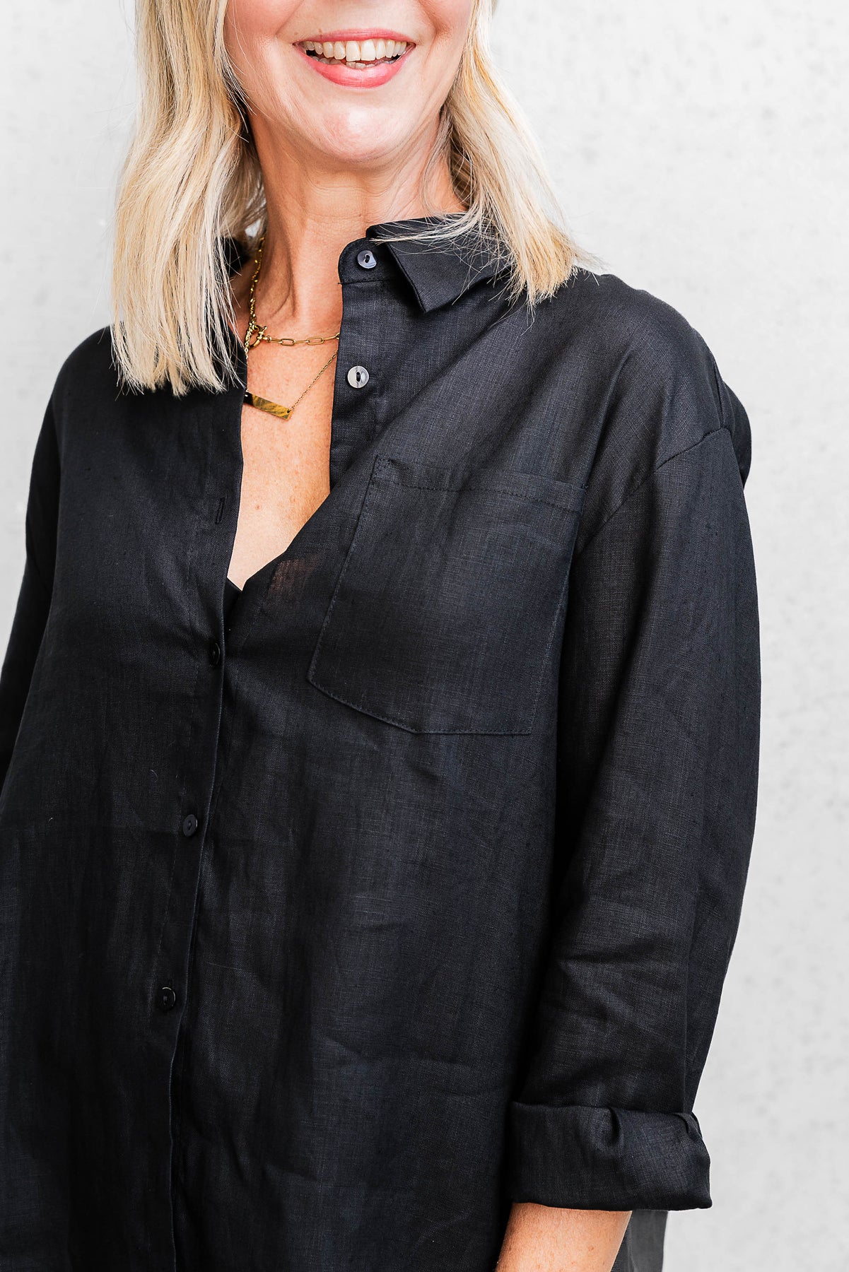 Boyfriend Linen Shirt - Black - Mabel and Woods