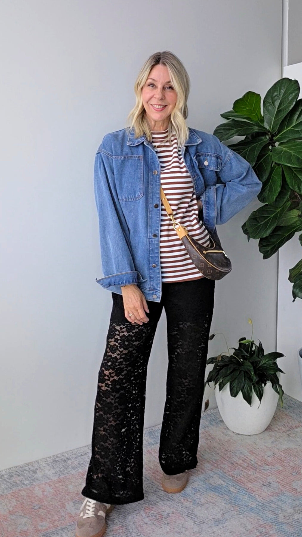 A heavier weight tee with plenty of stretch. She's oversized but not too long, so you still get that cool vibe without taking over your shape.